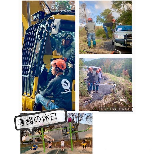 山の中では 楽しく♪安全⚠️に、仕事をする男たち😆